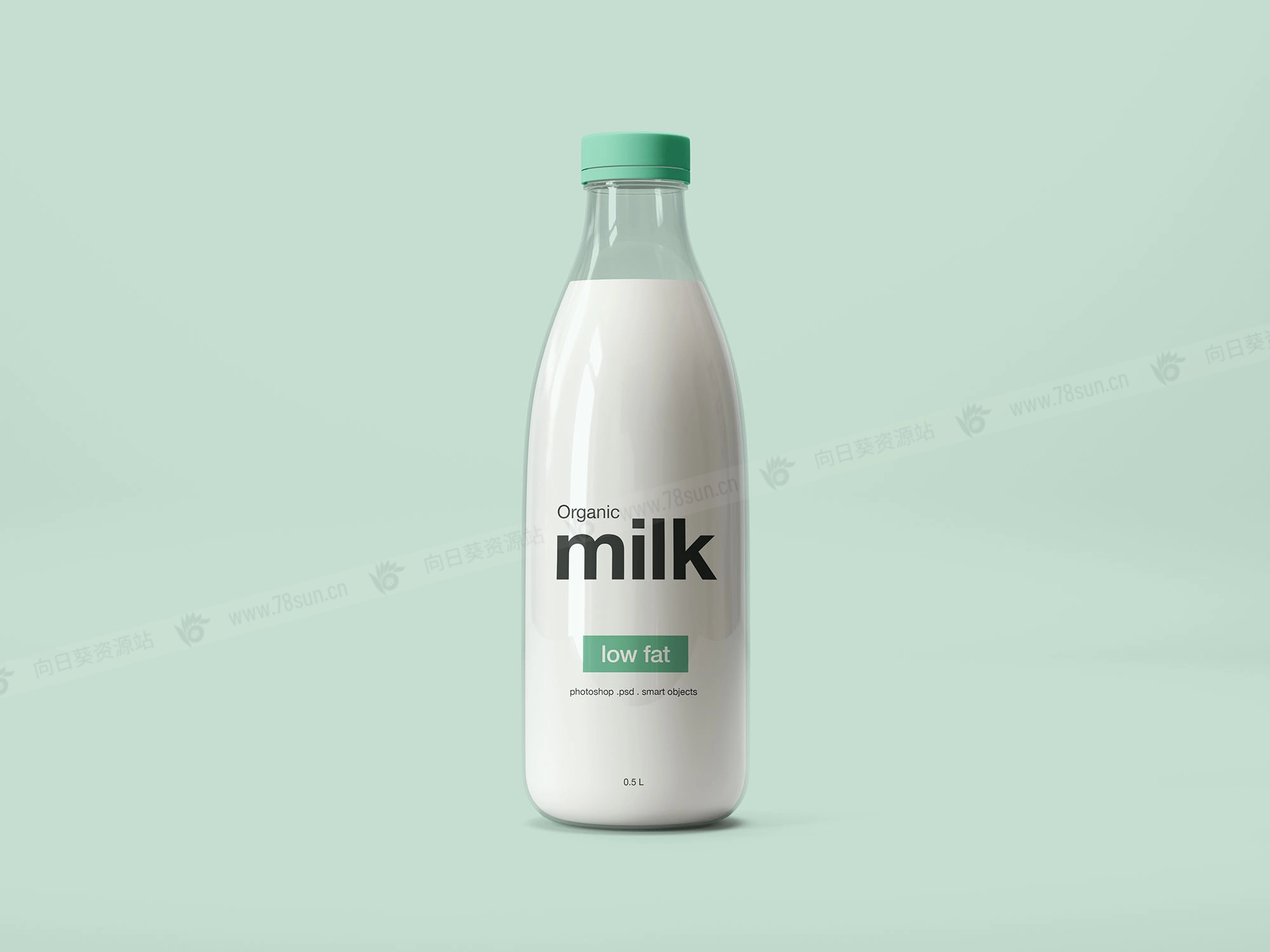 牛奶瓶模型,一个玻璃小巧的Photoshop PSD瓶,你可以一眼就能看到标签设计,几秒钟内就能把设计带到现实中。