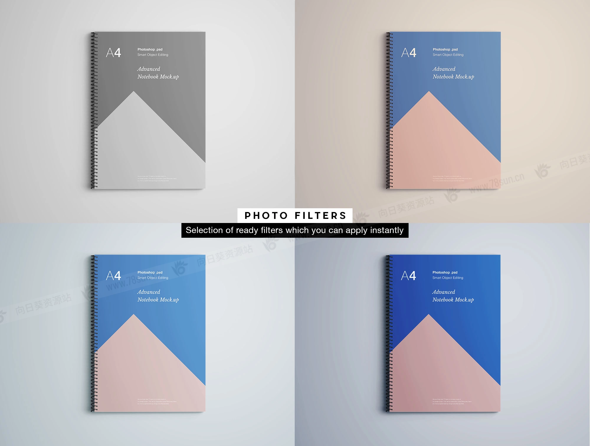 经典的笔记本专业模型。尺寸为A4,图形以Photoshop格式提供,编辑则可通过智能对象和有序的特效图层轻松完成。