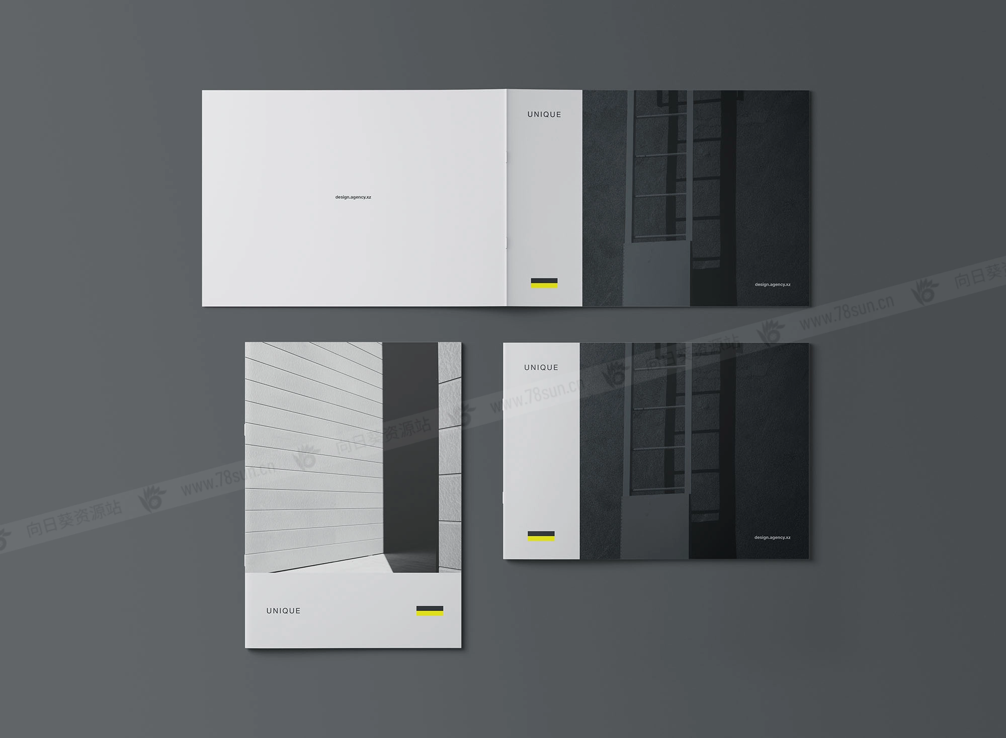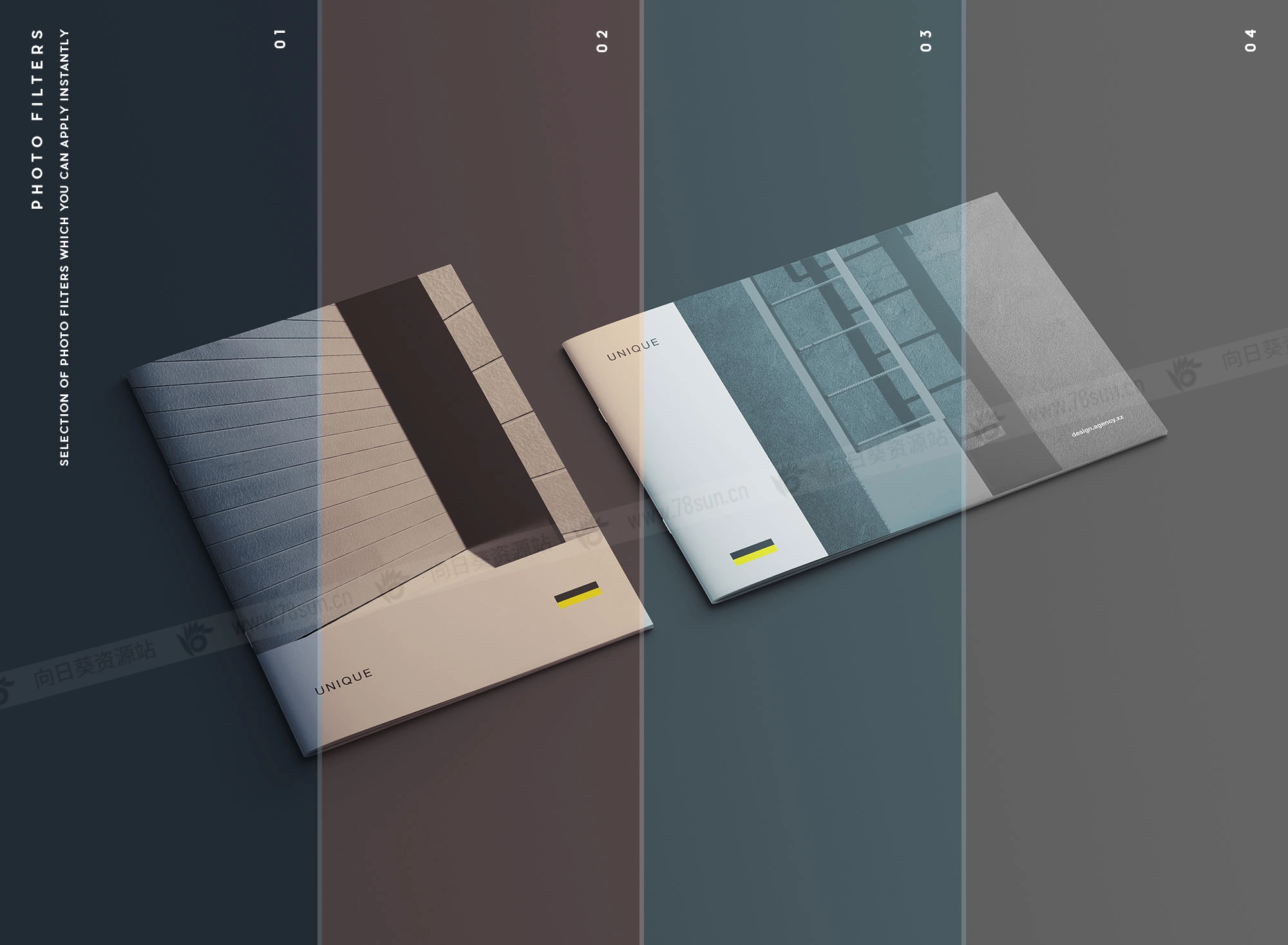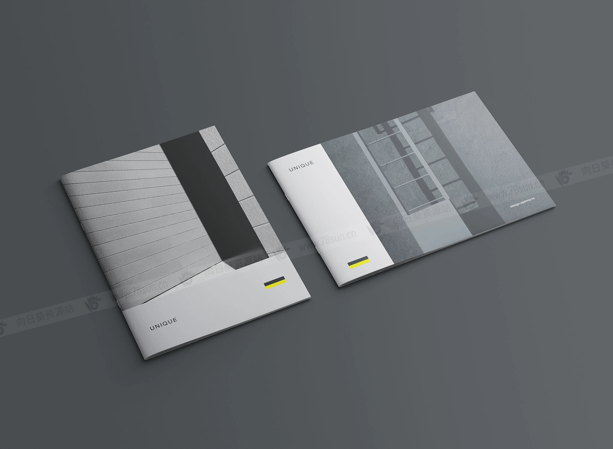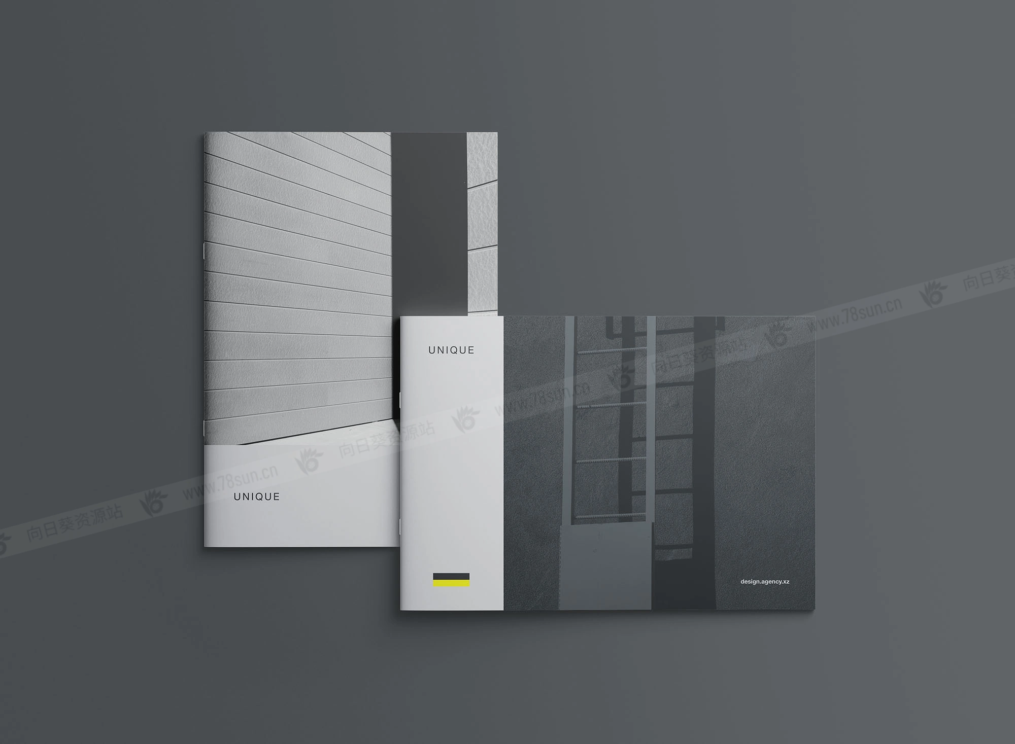 A4宣传册模型,结合了两种取向;直向和横向适合同时展示两种设计选项以便比较。设计师可以利用这一点轻松向客户展示不同的选择。Photoshop文件可以用智能对象图层进行自定义。