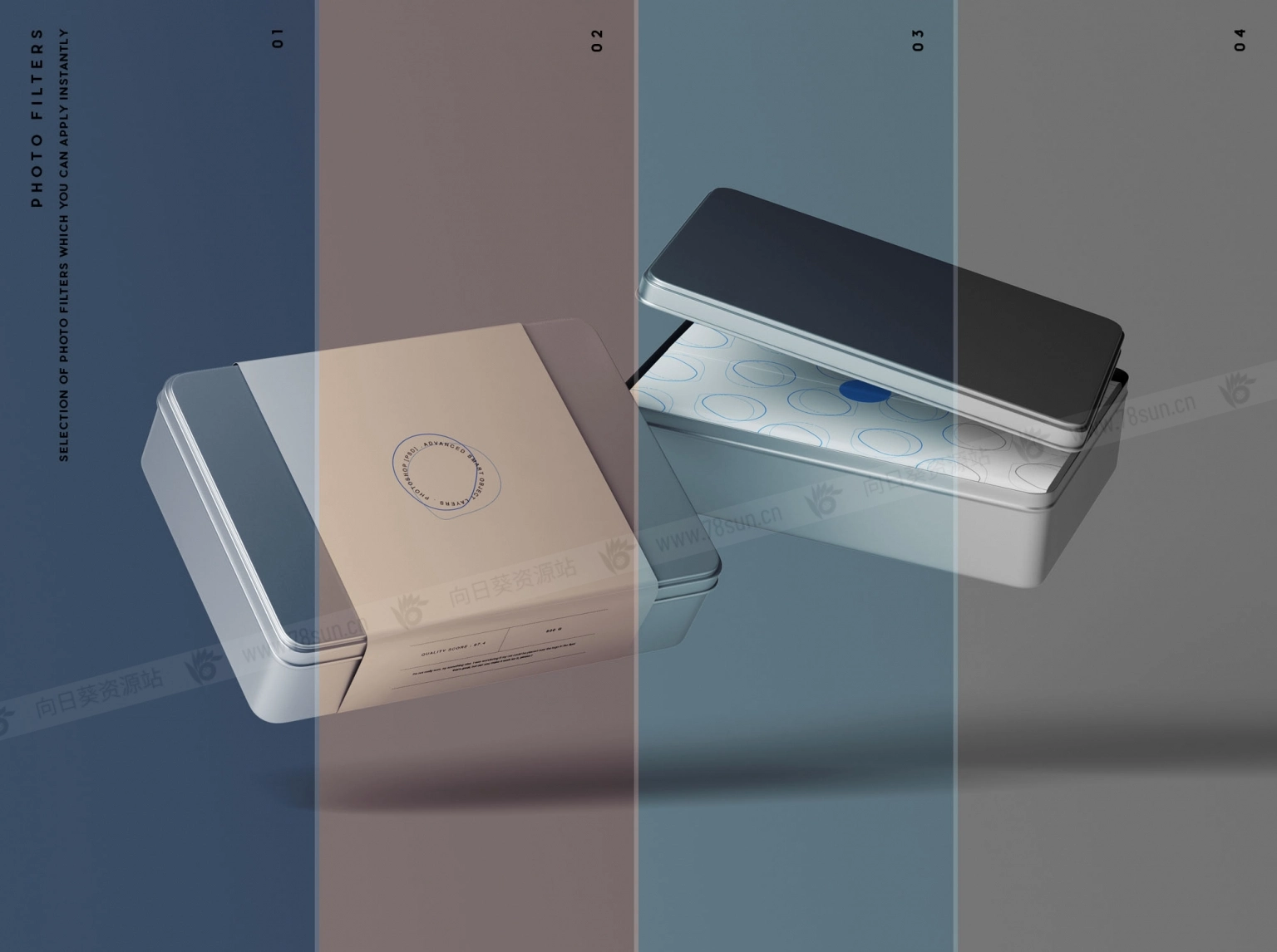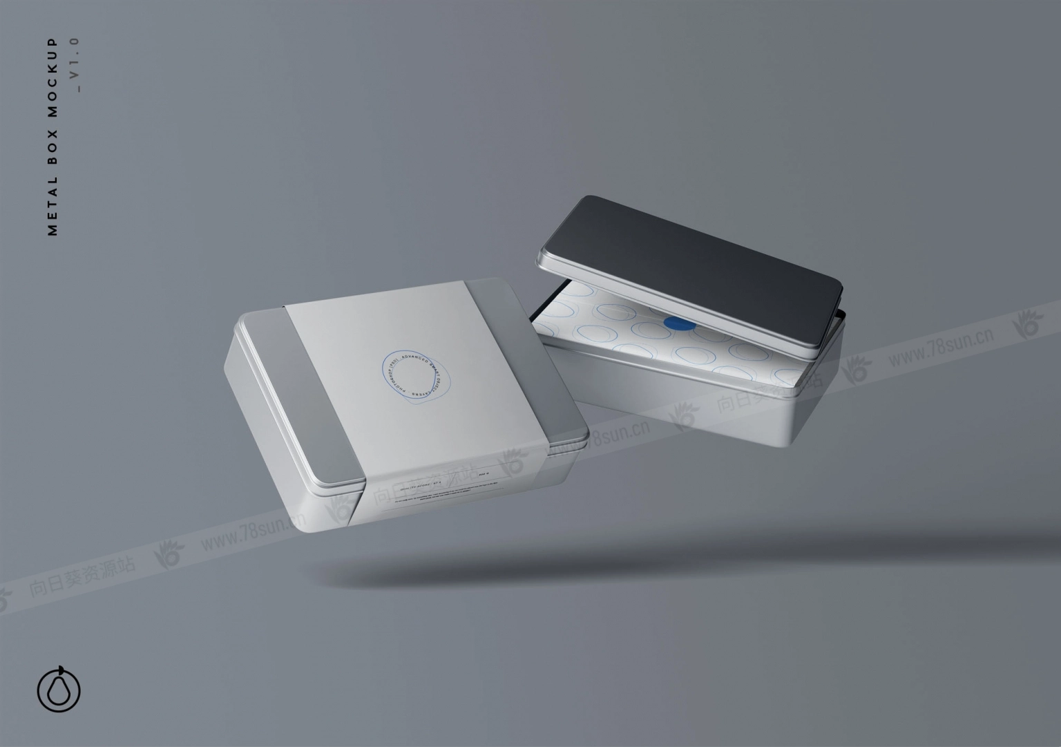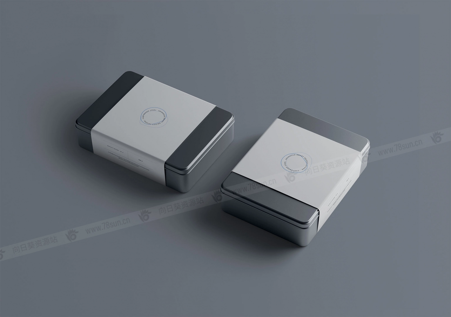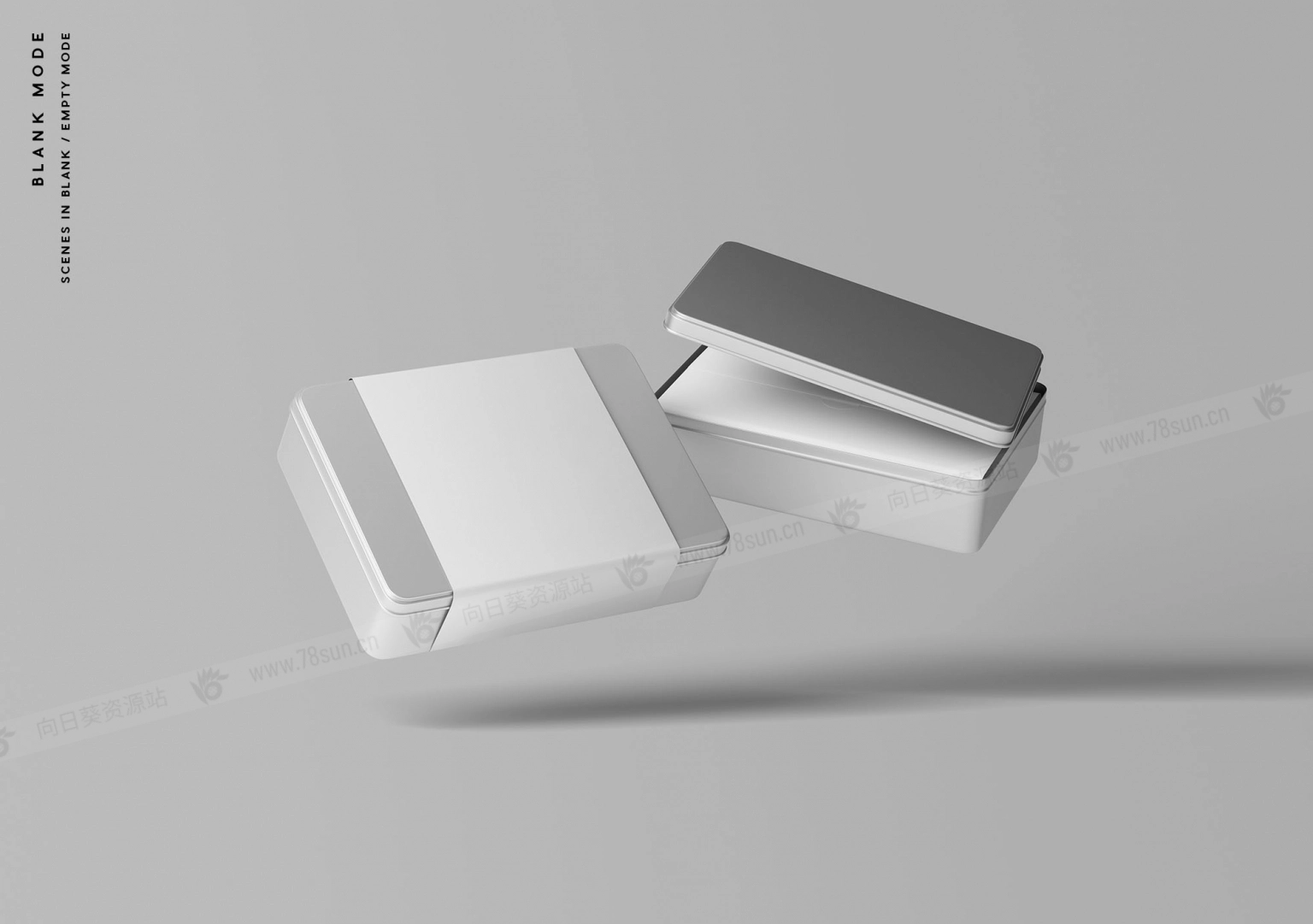 7个金属盒子模型场景,以照片级逼真的方式展示你的产品包装和品牌设计。