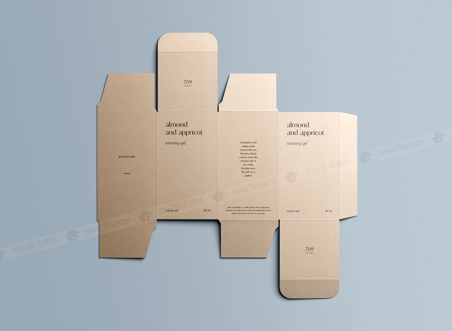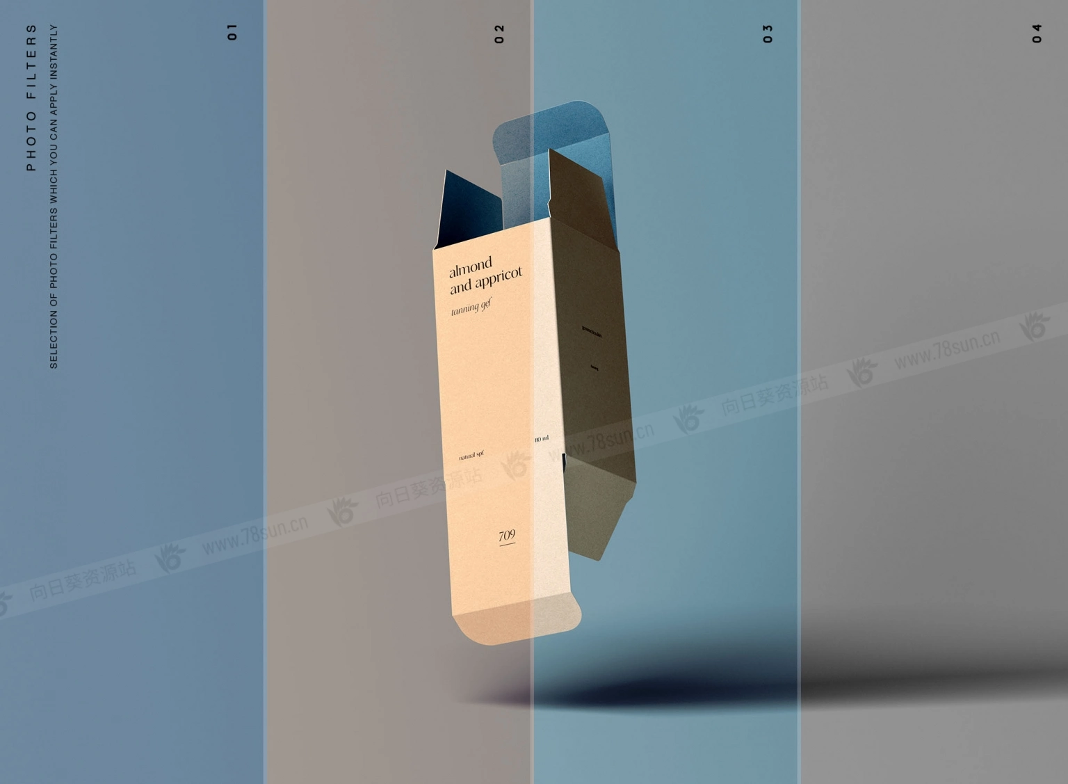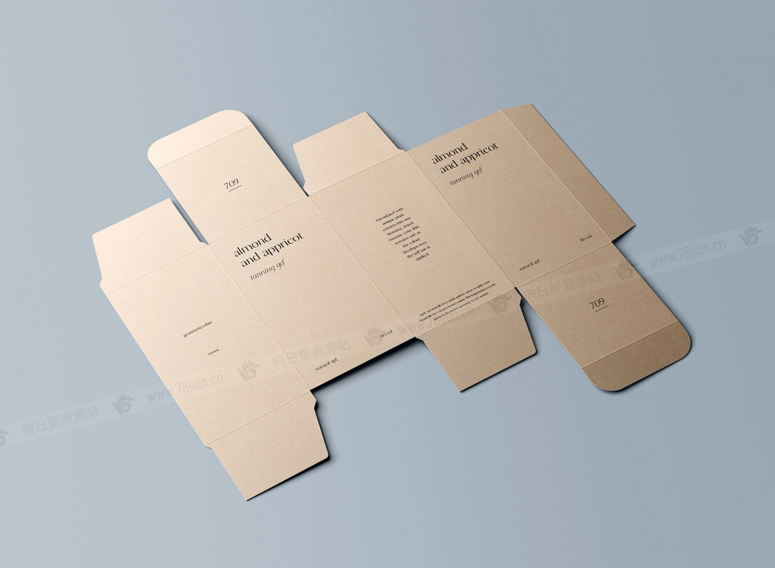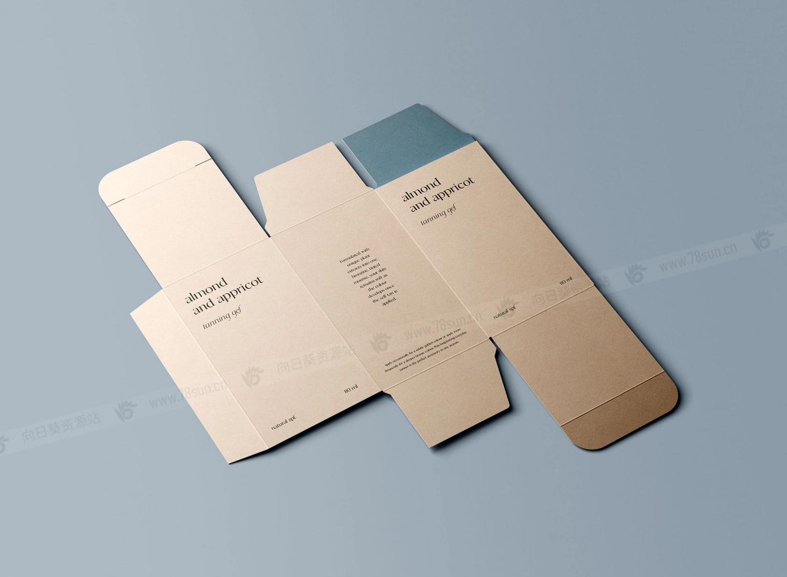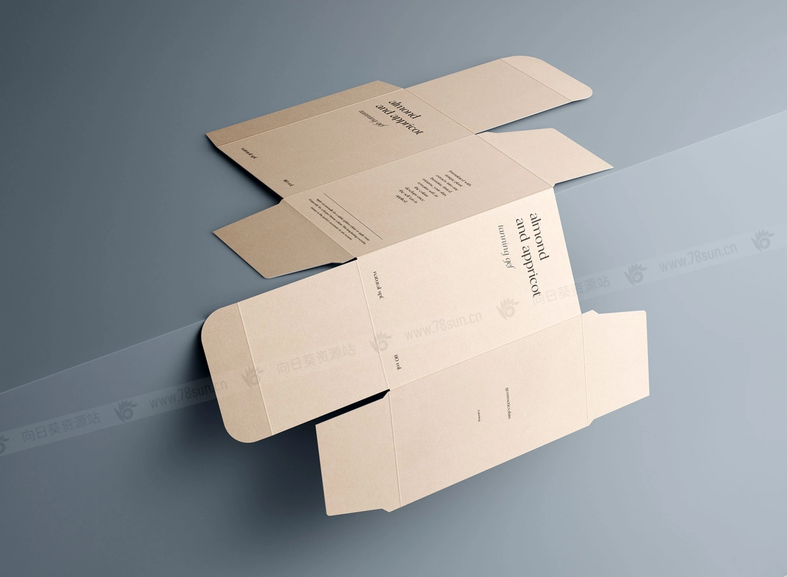 展开的矩形盒子模型,以逼真的方式展示你的产品包装,提供7种不同选项。编辑可以通过智能对象图层轻松完成。