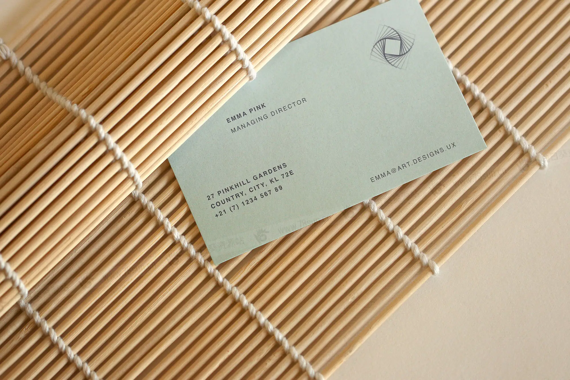 名片模型,一种优雅且简便的方式来可视化和展示你的品牌身份设计。该文件适合餐厅及其他企业,且可通过智能对象图层轻松编辑。