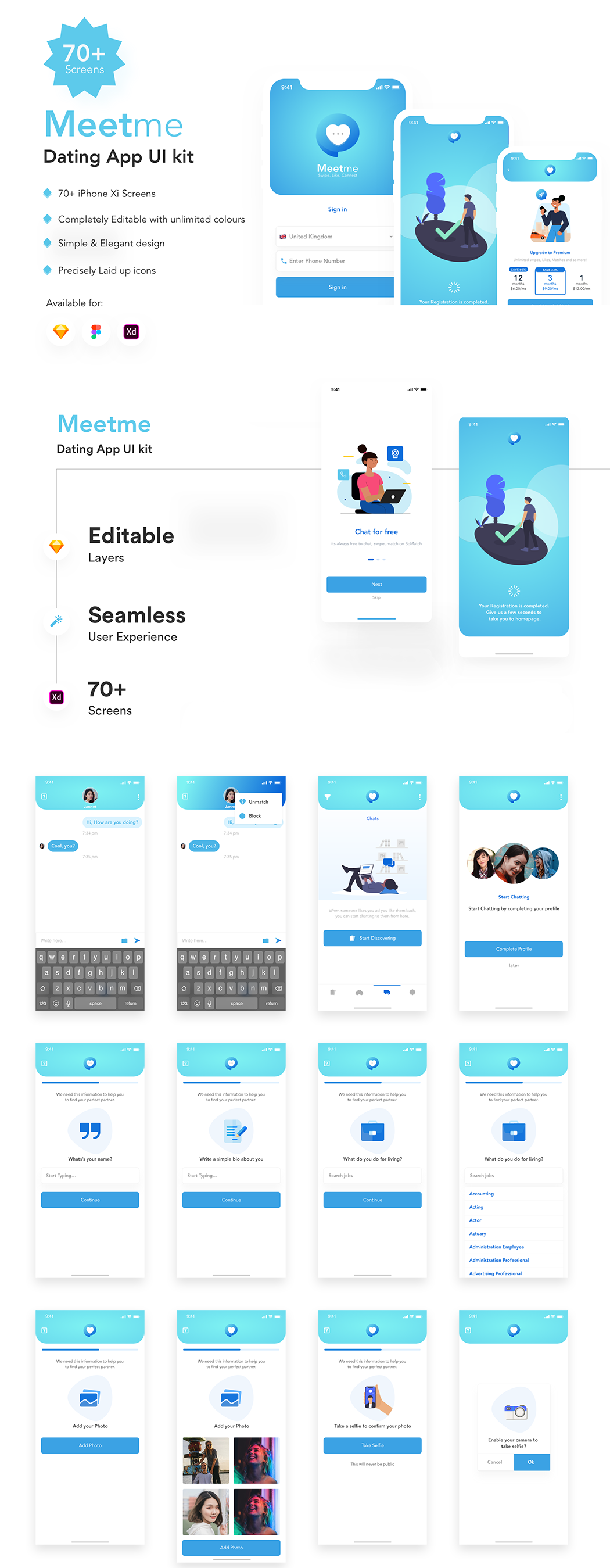 约会交友社交资料照片编辑引导页app ui源文件sketch xd模板 声明:本站所有资源版权均属于原作者所有,这里所提供资源均只能用于参考学习用,请勿直接商用。若由于商用引起版权纠纷,一切责任均由使用者承担。更多说明请参考 VIP介绍。