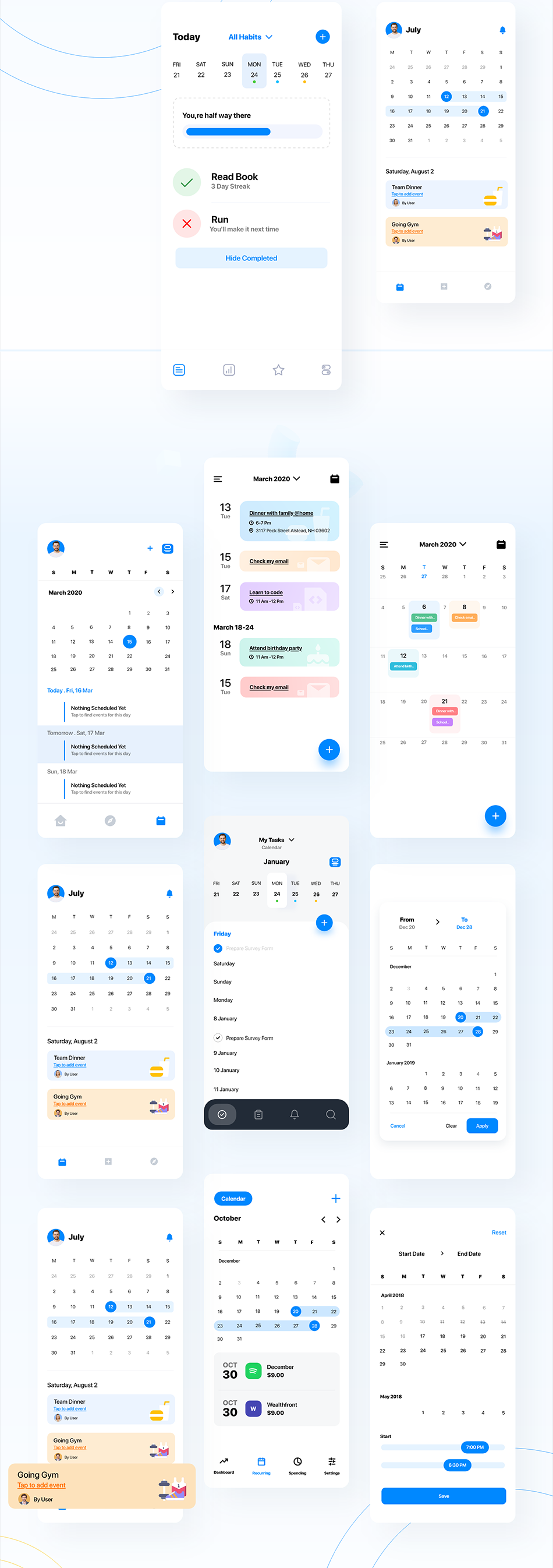 日历待办事项定时预约订票事务备忘录等 app ui源文件xd模板 声明:本站所有资源版权均属于原作者所有,这里所提供资源均只能用于参考学习用,请勿直接商用。若由于商用引起版权纠纷,一切责任均由使用者承担。更多说明请参考 VIP介绍。